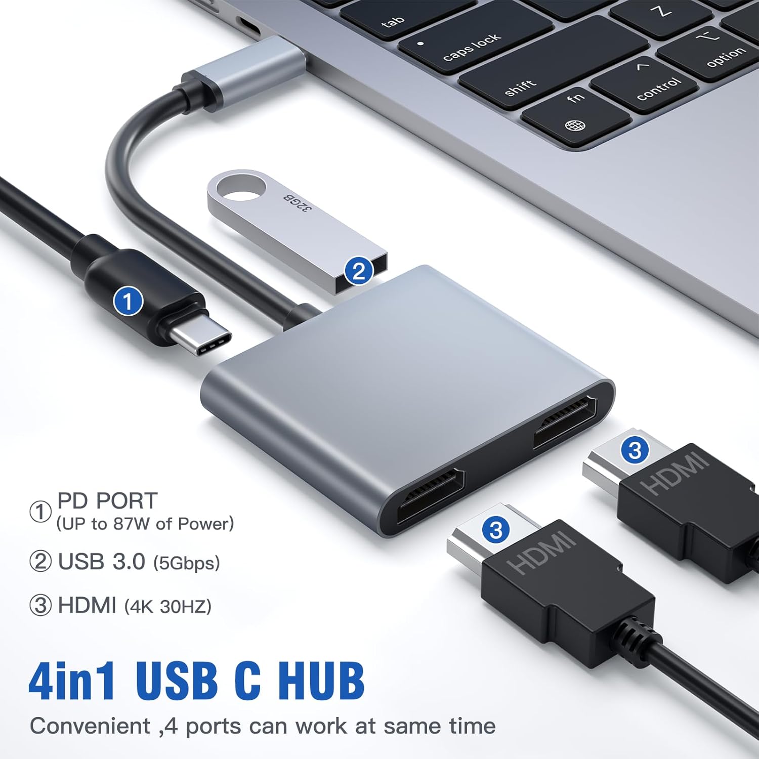 خروجی تصویر دوگانه (Dual HDMI): این هاب به شما امکان میدهد تا دو نمایشگر خارجی را به صورت همزمان از طریق پورتهای HDMI متصل کنید، که برای مولتیتسکینگ و افزایش بهرهوری بسیار کاربردی است.