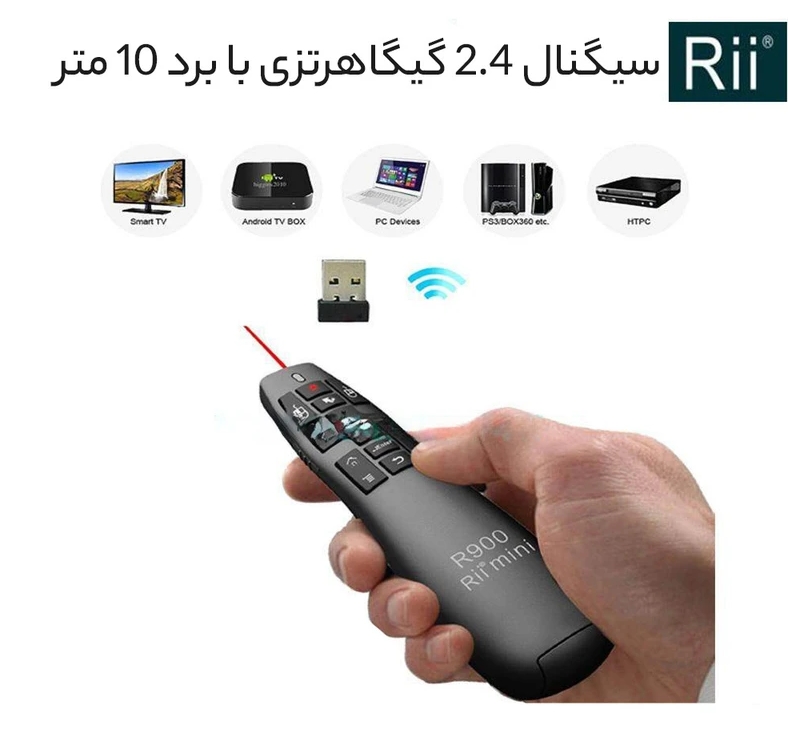 پرزنتر بیسیم ری مدل R۹۰۰ Mini ابزاری کوچک و قدرتمند است که برای ارائههای حرفهای و مدیریت اسلایدها طراحی شده است. این پرزنتر با بهرهگیری از فناوری اتصال ۲.۴ گیگاهرتز (۲.۴ GHz)، اتصالی پایدار و بدون قطعی را تا برد ۱۰ متر برای شما تضمین میکند، که آزادی عمل کامل را در حین ارائه در اختیار شما قرار میدهد.