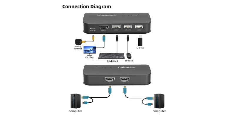 KVM دو پورت دستی یک راهکار ایدهآل برای کاربرانی است که میخواهند تنها با استفاده از یک مجموعه موس، کیبورد و مانیتور بین دو سیستم مختلف سوئیچ کنند. این دستگاه بدون نیاز به نصب نرمافزار و تنها با فشردن یک دکمه به شما این امکان را میدهد که کنترل کامل چند کامپیوتر را به سادگی در اختیار داشته باشید.